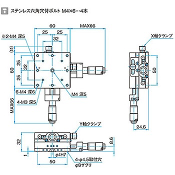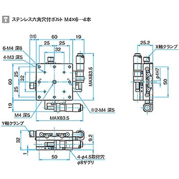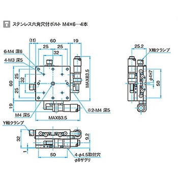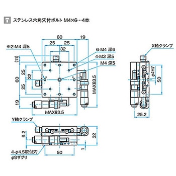 XY軸汎用型ステンレスステージ ステージサイズ60mm TSDH-602シリーズ