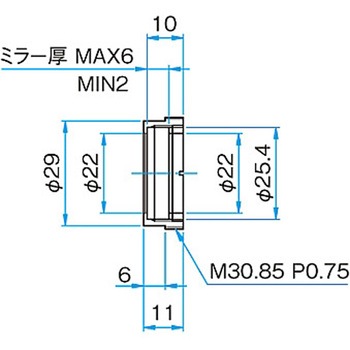 ミラーホルダーに適応する素子径のタイプがない場合に使用するサイズ変換マウントです。Φ10、Φ15、Φ20、Φ25.4mmの径のミラーは、Φ30mmに変換します。