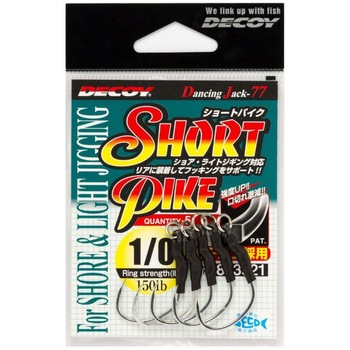 リアフックなしでは掛かりが悪そうで…、しかしトレブルフックでは根掛りが多い。とそんな悩みを解消するベリーショートシングル仕様です。フックはツインパイク DJ-88同様、素早い掛かりとキープ力で好評、ライトジギングを完全バックアップする「パイクAS-03」を採用。固定アイのシングルフックよりも自由度の高いアイが更にバレを防ぎフッキングをサポート。「ショートパイク DJ-77」はショアキャスティング、ジギングでのリア及びフロントへの使用はもちろん岸壁ジギングや誘い出し系ペンシルベイトへのセット等様々な使用が可能です。