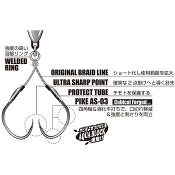 ライトジギングアシストの金字塔を打ち建てた「DJ-88ツインパイク」。この優れたトータルバランスと強度はそのままに、アシストラインをショート化!タングステン等、小型のジグに対応すべく開発されたのがSHORTERです。その短さゆえリアに装着してもエビになりにくく、さらにツインパイクと併用することで、ジグのポテンシャルを最大に発揮する細かなセッティングを実現。