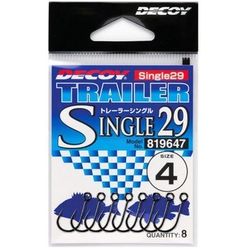 「トレーラーシングル シングル29」はフラッシュボムに標準装着されたタテアイシングルフックです。チヌやコチ等の堅いアゴへも確実に刺さり込みホールドしてくれます。カキ殻エリア等を攻める事が多く、ポイントの傷みが早いチヌ用ジグのスペアフックに最適です。