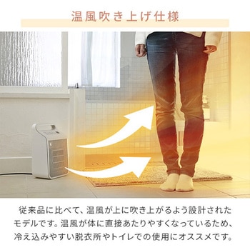 温風を出して暖める、速暖性に優れた暖房。従来品に比べて、温風が吹き上がるよう設計されたモデル。