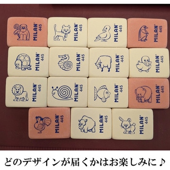 スペインの文房具メーカー MILAN(ミラン)の『消しゴム NO.445&NO.624 5個セット』です。NO.445、NO.624 どちらもMILANの定番ロングセラー消しゴム。NO.445 - 柔らかな消しゴム。シンプルでありながら、計算されたロゴバランス。かわいい動物デザインがとてもおしゃれです。445の消しゴムにはピンク、ホワイト、グリーンがありますが、お色の組み合わせはご指定いただけません。あらかじめご理解ください。(デザインも画像とは異なる場合がございます)。NO.624 ホワイトボディに MILANロゴ。ピンクのセロハンに包まれています。MILANのアイコニック消しゴムのひとつです。あらゆる紙面の鉛筆ストロークを消してくれます。おしゃれな個別ブリスターパッケージ。文房具好きのお子さま、お友達へのプレゼントに最適です。