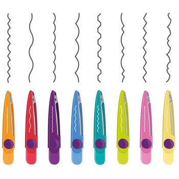スペインの文房具メーカー MILANのデザインがとてもかわいい『ジグザグハサミ(替刃8本入り)』です。ハンドル部分は共用で、刃の部分のみを取り換えて使用するタイプのはさみです。8種の切り口デザインを自由に組み合わせられるので、工作好きの方にお勧めです。パッケージもかわいいので、お子さまへのプレゼントにも最適です。材質:プラスチック・ステンレス。内容:替刃8種(オレンジ・レッド・パープル・ブルー・ターコイズ・ライトグリーン・ピンク・イエロー)、ハンドル部分(パープル)。