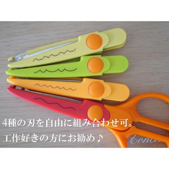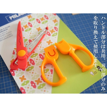 スペインの文房具メーカー MILANのデザインがとてもかわいい『ジグザグハサミ(替刃4本入り)』です。ハンドル部分は共用で、刃の部分のみを取り換えて使用するタイプのはさみです。4種の切り口デザインを自由に組み合わせられるので、工作好きの方にお勧めです。パッケージもかわいいので、お子さまへのプレゼントにも最適です。材質:プラスチック・ステンレス。内容:替刃4種(オレンジ・ライトグリーン・レッド・イエロー)、ハンドル部分(オレンジ色)。