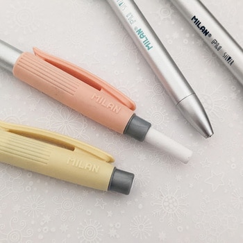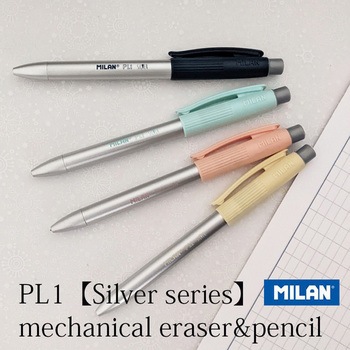スペインの文房具メーカー MILANの人気シリーズ『【Silver】 PL1 シャープペン HB 0.5mm』です。メタリックなシルバーボディが素敵なシャープペンシルです。MILANオリジナルの特大3.5cm消しゴム付き。カッコ可愛いく、とても便利です。ピンク・ネイビー・グリーン・イエローのアソートです。