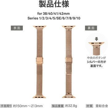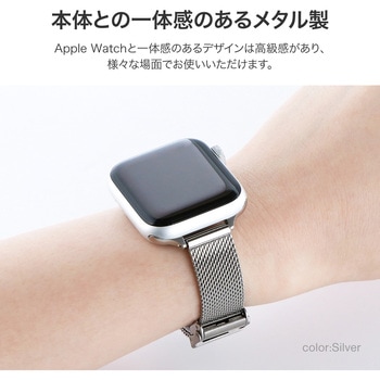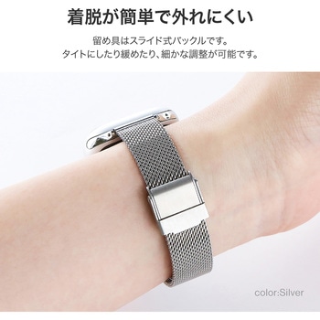 本体との一体感が魅力のメタル製Apple Watchバンド/着脱が簡単で外れにくいスライド式バックル/スリムで主張しすぎないメッシュ編みデザイン