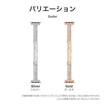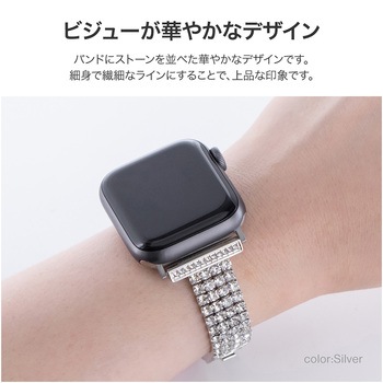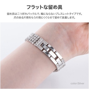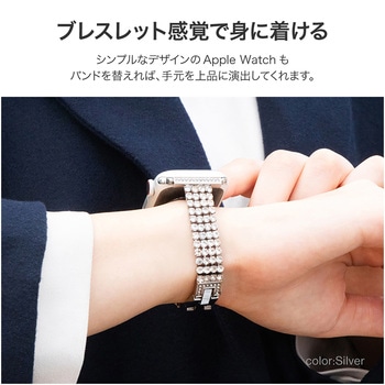 本体との一体感が魅力のメタル製Apple Watchバンド/ブレスレット感覚でつけられる二つ折れ式バックル/細身で派手すぎない、ストーンを並べた華やかなデザイン
