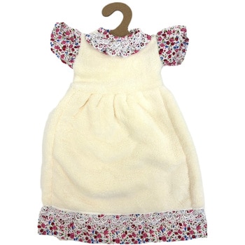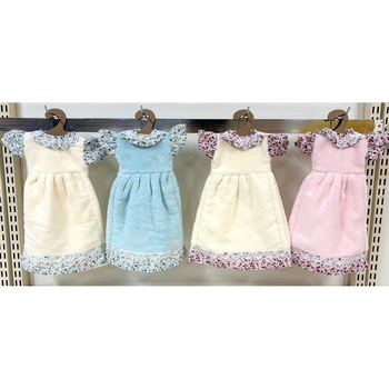 ハンガー付きドレスタオル。キッチンや洗面所にかけて、手拭き用に。やわらかな肌触りのマイクロファイバーで、レースが付いている可愛らしいデザイン。
