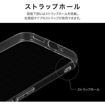 高透明で柔らかなTPUケース/柔軟性があり着脱が簡単/ボタンやカメラレンズ周りを保護する精密設計/マイクロドット加工で端末に張り付きにくい/ストラップホール搭載
