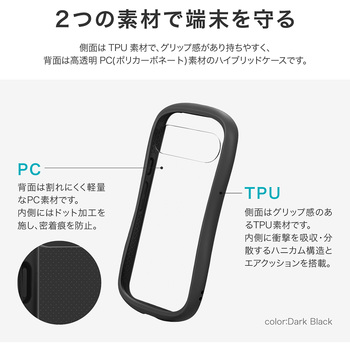 【耐衝撃】 衝撃を吸収・分散するハニカム構造のTPUと、割れにくく軽量なPCのハイブリッドケース/側面全体がなめらかにラウンドした持ちやすいデザイン/ボタンや端子周りを保護する精密設計/ストラップホール搭載(側面)/写真やステッカーを使ったアレンジも楽しめる背面クリア仕様/ショルダーストラップの取り付けに最適な「挟み込みシート」付属/60日間交換保証付き