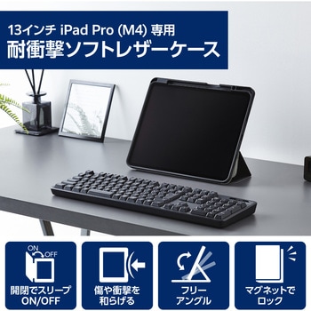 弾力性と硬さをあわせ持つTPU素材が傷や衝撃を和らげる、13インチiPad Pro(M4)用ソフトレザーケースです。機器本体のスリムなフォルムを損ねずに保護します。