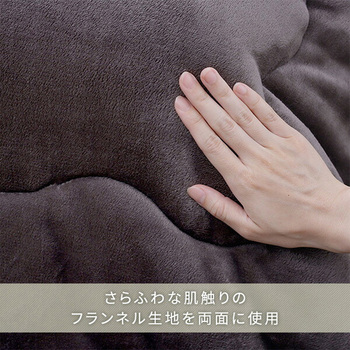 さらふわな肌触りのフランネル生地を両面に使用。気分に合わせて両面楽しめるリバーシブルタイプ。ほこりの出にくい、ポリエステル綿をたっぷり1.4kg。波型のキルティング加工をこたつ布団に施しているので中綿のズレを防ぎます。カバーを固定する時に便利なループを四隅に設置。