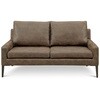 レザーファブリックの2人掛けソファ。落ち着いた色味の5色からお選びいただけます。レザーファブリックとは、高級感のあるレザーの見た目でありながら、肌触りはファブリックの心地よさをあわせもった特徴的な素材です。