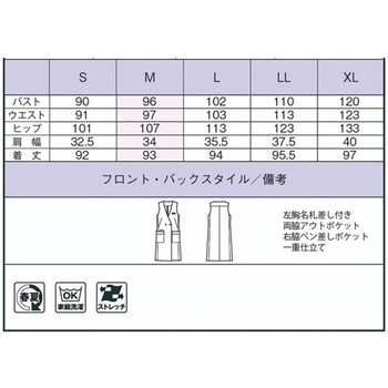 聡明な女性像を引き立てるスタイリッシュなスーティング。多様化する職種それぞれのニーズにマッチする豊富なアイテム展開が魅力のシリーズです。、特殊な糸構造による麻ライクな表面感が特長、裏面チンツ加工による微光沢で洗練度をアップ、動きをサポートする適度なヨコストレッチ、清涼感のあるサラサラとしたドライな風合い、通気性・吸水速乾性・抗菌防臭性に優れた裏地を採用、暑い季節も蒸れずに快適、お手入れのしやすいイージーケア素材、ホームクリーニングOK(手洗い)、「私服の上に羽織るだけで仕事服に!」、ロングベストは、私服の上に羽織るだけで決まるおしゃれなデザイン。その上で、大きめなポケットや動きやすく快適な素材など、ユニフォームならではの機能性はしっかりキープしました。