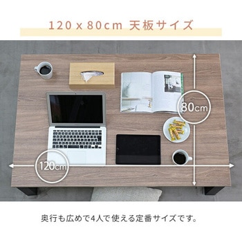 年中使えるこたつテーブル。新生活やひとり暮らしにぴったりなサイズ。ヒーターが発する遠赤外線で、ポカポカと身体の芯まで暖めます。ヒーターのでっぱりを抑えた薄型設計。こたつ本体にはコードを掛けるフックがついています。