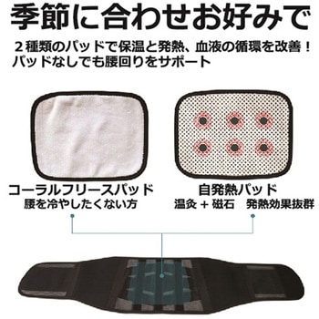 腰サポーターと首サポーターのセット品です。、装着すれば即実感、『腰』…腰椎から骨盤まで強力サポート!自発熱パッドぬくもり血行促進!、腰を強力サポート。ぴったりフィットする3Dアーチ設計。2種類のボーンでしっかり腰を支える。金属ボーン⇒腰椎固定、筋肉の負担軽減。樹脂ボーン⇒日常保護、腰をしなやかに保護。、ホールド&加圧。2重加圧で腰への負担を軽減する。幅広で腰全体をしっかり固定!腰椎から骨盤までをカバーし、よい姿勢をキープ。、自発熱パッド効果抜群。トルマリン+健康磁石6個。、季節に合わせてお好みで。2種類のパッドで保温と発熱、血液の循環を改善!パッドなしでも腰回りをサポート。『コーラルフリースパッド』…腰を冷やしたくない方。『自発熱パッド』…温灸+磁石。発熱効果抜群。、『首』…高密度トルマリンで血流UP!磁石でツボを刺激し代謝を促進!、速暖、首元を暖かく快適に!自発熱:トルマリン&ゲルマニウム&竹炭&サーマル。磁気:ツボに合わせた5個の内蔵磁石。保温:4層構造でも軽くて薄い。マイナスイオンと遠赤外線で暖かい!、高密度トルマリン&健康磁石。腰椎ツボを健康磁石で刺激。代謝の促進。高密度のトルマリンで大量のマイナスイオンと遠赤外線を放出。、ワンタッチ強力マジックテープ。着用しやすく自在に調整できます。、こだわりをもった逸品。人間工学に基づいた設計で細部までこだわりました。