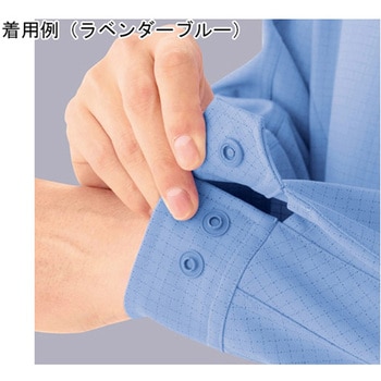 IEC規格に対応し、優れた低摩擦帯電性能を搭載した、男女共用の高性能静電服。、ストレッチ性があり、透けにくいフルダル糸を使用。また、糸ホツレを抑える巻き縫いを部分的に採用しました。、皮膚の動きを応用し、より動作がスムーズに。腕の上げ下げ時に発生する裾のつり上げを抑えます。また前後左右の動きに対しても抜群の動きやすさを実感できます。、生地からの発塵を最小限に抑えます。、吸い取った汗を素早く発汗します。また洗濯後の乾燥も素早いです。