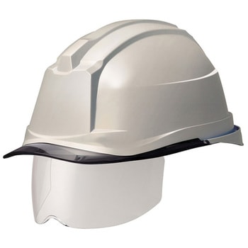 ムレの原因となっていた発砲スチロールを無くし新たに2重構造のパッドを採用。ヘルメット内部の空間が広がり、通気性が格段に向上しました。また、エラストマーを使用することにより衝撃を分散させる安全設計になっております。、すべてが樹脂製のため、そのまま水洗いができます。気になる汚れや匂いの付着を防ぎ、毎日、快適にお使い頂けます。、収納式の防災面で、キズや衝撃に強い、ハードコート処理済みポリカーボネートを使用。メガネやマスクとの併用可能。、アゴバンドを固定する耳紐の採用で前後からの衝撃によるヘルメットのズレや脱落を防止します。、RAバンド:柔軟な素材と、後頭部を包むようにジャストフィットする湾曲形状。ヘルメットのぐらつきを防止します。、前後・左右のベンチレーション(通気孔)により、頭部のムレを効果的に軽減。安全で快適な作業に寄与します。、帽体周囲に雨天時の屋外作業で効果的な、レインガード(雨垂れ防止溝)を設けています。、※本製品は乗車帽ではありません。自転車・バイク等では使用しないでください。、※シールド(面)は飛来物・飛来防じん・薬品飛沫などから目や顔を守るものです。溶接作業(赤外線)やレーザ光作業には絶対に使用しないでください。