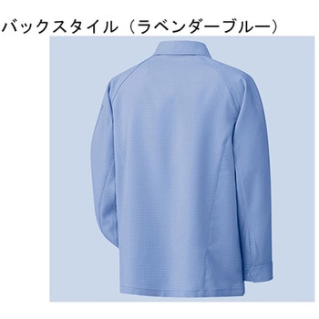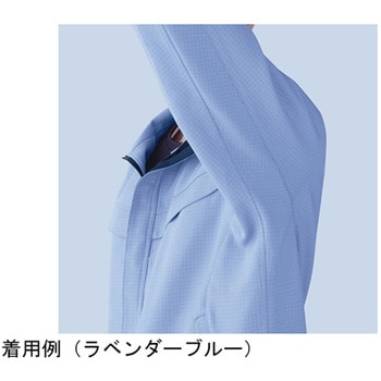 IEC規格に対応し、優れた低摩擦帯電性能を搭載した、男女共用の高性能静電服。、通気性があり、透けにくいフルダル糸を使用。また、糸ほつれを抑える巻き縫いを部分的に採用しました。、生地からの発塵を最小限に抑えます。、吸い取った汗を素早く発汗します。また洗濯後の乾燥も素早いです。、袖部 新立体裁断構造(360°回転仕様)、※SS・MW・LWは女性対応サイズになります。、※画像参考カラー:ラベンダーブルー