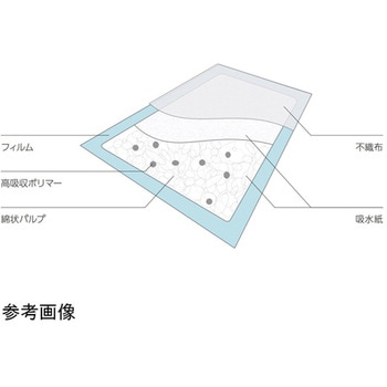 不織布・吸水紙・高吸収ポリマー・フィルムを用いた製品です。、多量の液体を素早く吸収し、液漏れを防ぎます。、防水シーツの目的で、ベッド・手術台・診察台等にご使用できます。、ボトムシートの色はブルーとホワイトの2色あります。、不織布、フィルム加工、吸水紙高吸収ポリマー、優れた吸水性、防水性