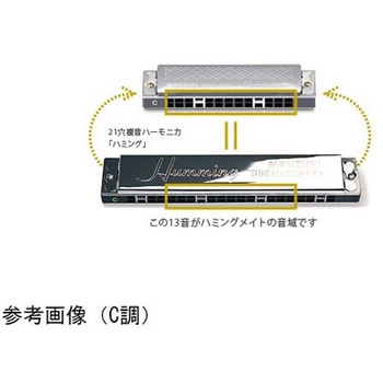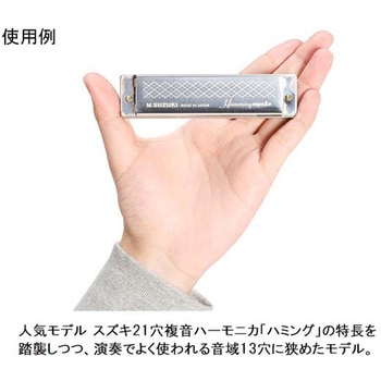 スズキのハミングメイトは、13穴・長さ11cm ほどのポケットサイズ 複音ハーモニカです。、複音ハーモニカとは、上下の穴を同時に吹き吸いして演奏するハーモニカです。トレモロのついた美しい響きが出るよう調律されています。、「メイト」は「相棒」や「仲間」という意味。手にした方にとってハミングメイトが「音楽の相棒」となるように願いを込めました。、初めてのハーモニカにも、プレゼントにもおすすめです。