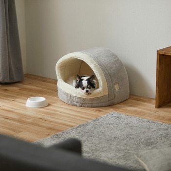 素材にこだわったトレンド感のあるおしゃれなクッションペットベッドです。こだわりの生地を使用しています(ラビットファー調、シープボア調)。トレンド感のあるおしゃれなカラーです。素材の質感も相まってインテリアにマッチします。クッションは手洗いが可能で、いつでも清潔です(本体は洗濯できません)。ベッドの底面には滑り止め付きで安心です。底面にホットカーペットのコードを通す穴が3か所付いています。