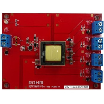 ●電源管理機能: オプトカプラ●併用可能製品: モータドライバ BD7F200HFN●キットの分類: アドオンボード●キット名: Evaluation Board●BD7F200HFN-EVK-001評価ボードは、出力電流定格が最大0.15 Aの絶縁型フライバックDC-DCコンバータ(BD7F200HFN-LB)を使用して、24 Vの入力から15 Vの出力4個を提供します。