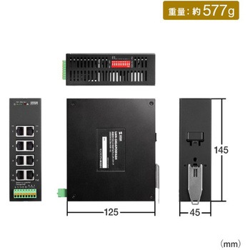セット内容取扱説明書、製品本体、DINレールマウント(出荷時取付済)、プラグ端子台材質筐体:メタル色ブラック出力(W)PoE対応ポート:af規格:15.4/1ポート(最大), at規格:30/1ポート(最大), bt規格:90/1ポート(最大)全ポート合計270まで電源(V)46~57DC (冗長電源)※1系統だけの電源入力でも動作可能。2系統入力することで冗長電源に対応可能。規格●VCCI:VCCI Class A●壁掛け:無●防塵:IP30ポート数8ポートスイッチスイッチファブリック:16Gbps適合規格FCC Part 15 Class AICES-003EN 50121-4EN 55032EN 61000-6-4EN 61000-6-2EN 61000-4-2 (ESD)EN 61000-4-3 (Radiated RFI)EN 61000-4-4 (Burst)EN 61000-4-5 (Surge)EN 61000-4-6 (Induced RFI)EN 61000-4-8 (Magnetic field)対応PoE対応有無:対応機能【AutoMDI/MDI-X】対応、MACアドレステーブル:4K準拠規格IEEE802.3(10BASE-T), IEEE802.3u(100BASE-TX ), IEEE802.3ab(1000BASE-T), IEEE802.1p(QoS)IEEE 802.3az Energy Efficient Ethernet最大消費電力(W)9.72通信方式モード:フルデュプレックス/ハーフデュプレックスバッファメモリ1.5 Mbytes(各ポートに動的割り当て)過電流保護対応保護サージ:6KV発熱量(KJ/h)972保管温度(℃)【環境条件】-40~85ファン仕様:静音ファンレスマグネット取付:無マウント19インチマウント取り付け:無伝送速度(Mbps)最大:1000 (1000BASE-T)フローコントロール制御無フィルタリング速度1488000パケット/秒(1000Mbps)、148800パケット/秒(100Mbps)、14880パケット/秒(10Mbps)オートネゴシエーション対応ジャンボフレーム対応(12Kbytes)スイッチング方式Store&ForwardRoHS指令(10物質対応)対応ポート構成:1~8ポート:1000BASE-T/100BASE-TX/10BASE-T、PoE/PoE+/PoE++アクセス方式CSMA/CD給電方式PoE:Alternative A, Alternative B最大パケット転送能力(Mpps)11.9リレー出力電源2系統入力時にON※リレー出力に接続する装置は1.0A@DC24V以下でご使用ください。MTBF(時間)4754396 (25℃) / 847570 (60℃)逆極性保護電源:対応湿度範囲(%)【保管時環境条件】5~95(結露なきこと)内容量1個