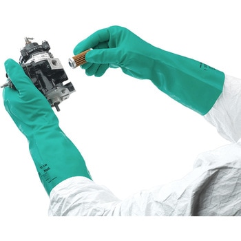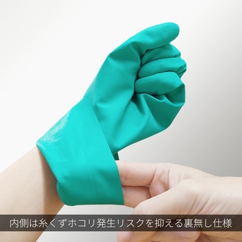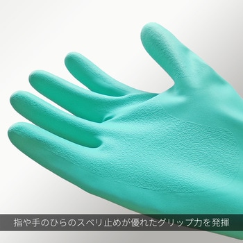 様々な化学薬品の取り扱いに使いやすい、うす手タイプです。ニトリルゴムのコーティングにより、油に強く、突き刺しや引っかきにも耐性があり、優れた耐摩耗性を発揮します。指や手のひらにスベリ止め加工が施されており、優れたグリップ力を発揮します。内側に綿加工がなく、糸くず等の発生リスクを抑制します。