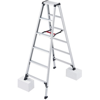 凹凸のある現場でも、脚部調整で水平をキープ。軽い:丈夫さはそのままに最大30%の軽量化を実現。肩当たりも柔らかく、身体にやさしい設計で、負担も軽く。片手で楽:開き止めが進化。新開発「ワンタッチバー」で作業効率が向上。安心・安全:シリーズ全てJIS適合品に。品質・性能ともに安心。幅広天板は工具などを置ける便利な天板トレー形状。下部操作レバー:アジャスターには目盛りが付いているので段差の違う現場でも調整が簡単。