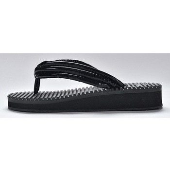 オリジナルの天面意匠は歩行時や静止中にすべての足指を動かしやすく設計。バランス良く身体を支える力の習得へとつながる (意匠登録出願済)、足裏に適度な刺激を与え血行促進や疲労回復効果が期待できる、天面の高反発EVAは着地の衝撃を、弾むような推進力に変換する、外側鼻緒を下肢のバランスを補う位置に配置し歩行時の安定性を考慮、鼻緒材は長時間履いても足指が痛くなりにくい加工を施している、独自設計の角度を付けたソールにより、正常な姿勢形成へと導く、底全面にラバーを貼ることで、濡れた床や路面での滑りを抑制する