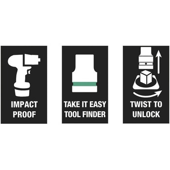 ソケットにある環状の溝により、電動工具のロックピンまたはOリングで固定できます。