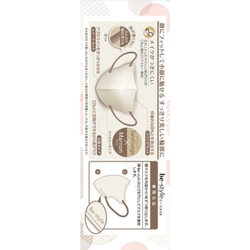 顔にフィットして小顔に魅せる すっきり美しい輪郭に、メイクがつきにくい ふわっとやさしい肌ざわりの口もと素材(エアスルー素材)、印象的な目もとを演出するラウンドカット、アゴのラインをすっきりみせるスマートカット、耳が痛くないふんわり幅広耳ひも、口もとに空間ができるから息がラク、徳用20枚