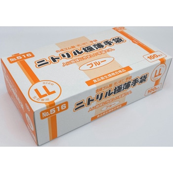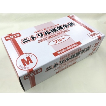 ニトリル極薄手袋 粉付 ブルー 100枚×20箱 516シリーズ