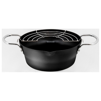 油はねしにくい段付形状、少量の揚げ物に適している、油きりに便利なアミ付き