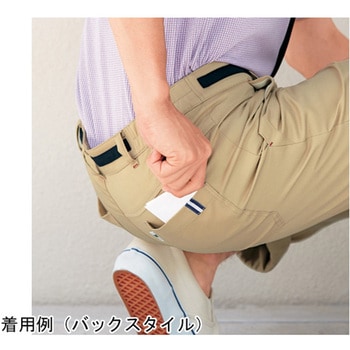 立体設計で動きやすく、綿混素材で上質感をプラスしたツイルパンツ。体に沿うカーブベルト&ウエストゴム仕様で、腰まわりを締めつけません。さらに、後ろ側を高く設計しているため、しゃがんだときの”チラ見え”もなく安心です。さらに股部分のマチで、しゃがんだままでの移動や介助もラクラク。引きつれたりせず快適なはき心地。丈詰めしなくてもロールアップで着られるように、デザインテープで、オシャレ感を演出します。素材のNSSツイルは、きめが細かく美しい「工業洗濯」対応のストレッチ素材。制電糸入りで静電気も防ぎます。