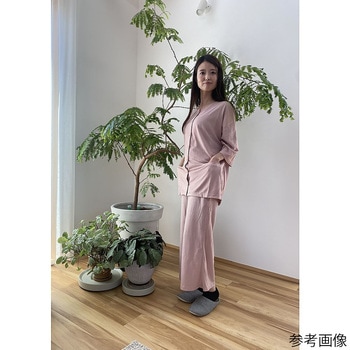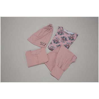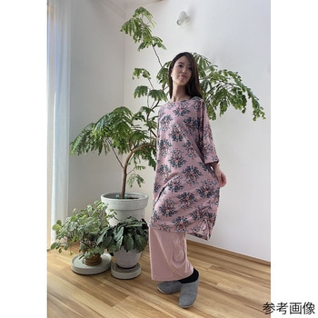 ワンピース・ドルマンシャツ・パンツの3点セット ※収納袋が付属します。【コンセプト】睡眠科学の観点から創り上げた"ネムレル・パジャマ"。パジャマには3つの大事な役目があります。それらすべてを叶えるべく誕生しました。1.睡眠中の発汗に素早く対応できるレーヨン素材(肌の当たる部分)、2.ストレスフリーを目指したゆったりサイズ、3.おなかを守るハラマキタイプのパンツ、心地よい睡眠時間と楽しいおうち時間を両立したネムレルパジャマ3点セットです。【商品詳細】、保湿性(シアバター加工による)によって肌触りがいい生地に仕上げ、着るだけで美しく見えるように設計されています。裏地(肌側)はレーヨンの素材の特性である吸放湿性と吸汗性により快適さを高めています。ニット地の特性を活かすためウーリー糸(伸縮糸)を使用しており、生地を伸ばしても糸切れしにくい縫製をしています。ワンピースの生地裏は、植物由来の素材・レーヨンだけが肌に当たるよう「ミニ裏毛」で編み上げました。レーヨンは水分率が高くしっとりなめらかな感触。レーヨンは素材の特性上、吸汗性・吸湿性にすぐれます。ワンピース・シャツ・パンツの生地裏は、シアバター加工を施し、保湿性があり肌触りも良く仕上げています。【ワンピース】デザイン性にもこだわり、ダマスク調の手描き風の大柄プリントは、エレガントの中にも可愛らしさが混ざっていて、大人の女性も挑戦していただきやすいデザインです。パジャマだけでなく部屋着・ワンマイルウェアとしても活躍します。【前開きシャツとパンツ】徹底的に睡眠に特化したスタイルで、検査入院等でも重宝します。前開きシャツは、ドルマンスリーブを採用しました。肩・腕が動きやすいデザインなので、二の腕まわりや脇肉の段差、ぽっこりお腹などが気になる方にもおすすめです。袖口はあえて絞らずゆるっと着られ、窮屈感もなくリラックスした状態でおやすみいただけます。シャツと同色のお洒落ボタンを直径2cmの大きめに採用しました。これにより、外しやすく架けやすくなっています。上着にもポケットがついているので、小物を収納するのに便利です。襟がない仕様なので、「襟が枕にあたって寝心地が変わってしまった!」という嫌な思いをしません。襟がないことで、首周りの通気性が向上し、夏でも快適に着用できます。パンツのウエスト部分はリブ編みを採用。ウェスト部分の締め付けを感じにくい幅広のリブ編みであるため、ウェスト周囲(実寸)約60cmですが最大約100cmまで対応します。ハラマキタイプであり、その長さ約13cmなので腹部をしっかりカバーでき、女性の大敵である「冷え」の対策にも。