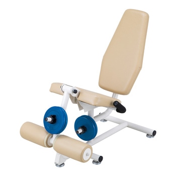高齢者向けの筋力トレーニングに適したダンベルプレート式運動マシンです。太もも前後を中心とした下半身の筋肉に対して効果的です。2.5kgのプレートが4枚付属しており、使用者に合わせて重さを調整できます。