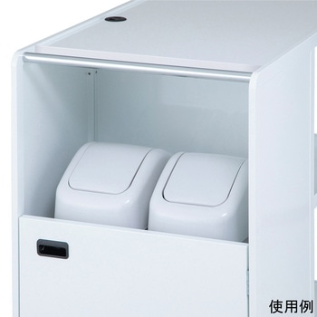 天板が広く、物品をたくさん載せることが出来るオムツ交換車です。側板付きの収納スペースがゴミ箱を隠し、スッキリとした外観です。ハンドルが2箇所にあるため、進行方向の切り替えが容易です。おしぼり機やバッテリー搭載時の配線用にコードホールキャップがついています。
