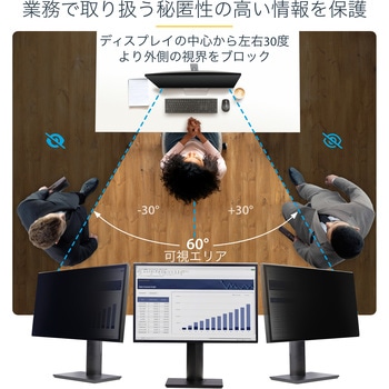 秘匿性の高いデータを保護:画面正面を中心に60度(左右30度)より外の角度からは暗く見えるマイクロルーバー技術を採用。周囲からの覗き見をブロックし、データの機密性を高めるアクリル製プライバシーフィルター