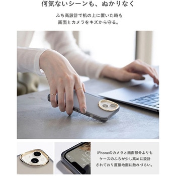 カメラや画面をキズから守るフチ高設計。フチが高く設計させており直接地面に触れにくく、キズから守る。