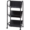 まとめて収納!フルブラックでシックなシンプルワゴンです。ご自宅でも職場でも使用しやすい、無駄のないシンプルなデザイン。棚自体が斜めになっているので背表紙が見やすく、出し入れしやすいデザインです。仕切りが付いているので、種類別に分けて収納でき、転倒防止のブックエンドにもなります。A4サイズの書類もはみ出ることなく収まります。スチール製なので汚れてもサッとお手入れでき、キャスター付きで重い書類を入れても手軽に移動できます。