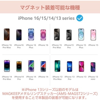 リング部分にはキラキラ光るストーンが散りばめられ、アクセサリーのように美しく手元を彩る&meシリーズのスマホリングです。光沢感のある質感で、日々のファッションにも合わせやすいデザインです。磁力で着脱できるので、ワイヤレス充電や電子決済に素早く対応できます。リング部分はスタンドとしても使用でき、動画視聴などを快適に楽しめます。