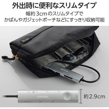 色シルバー備考※各OSの最新バージョンへのアップデートや、サービスパックのインストールが必要になる場合があります。対応OSWindows 11/10、macOS Sonoma 14/macOS Ventura 13、iPadOS 17/16外形寸法(幅W×奥行D×高さH)(mm)約29×131×13 ※ケーブル含まず動作環境温度5~40℃、湿度30~80% ※結露なきこと保証期間1年間電源供給方式バスパワーケーブル長(cm)約20※コネクター含まずUSBポート数【ダウンストリーム】1:USB Type-Cポート×1 ※充電専用USB Power Deliveryポート、【ダウンストリーム】2:USB Type-Cポート<USB>×2 ※データ通信専用。映像出力には対応していません、【ダウンストリーム】3:USB-Aポート<USB>×2、【USBポート(ダウンストリーム)】※最大供給電力:4ポート合計15W(5V/3A)、【USBポート(ダウンストリーム)】※本製品はUSBポートを増設するための製品です。本製品を使用してスマートフォン・タブレットを充電することはおすすめできませんコネクタ仕様【アップストリーム】USB Type-C(TM))プラグ×1<USB> ※USB Power Delivery対応(最大入力100W/最大出力85W)、DisplayPort(TM) Alt mode(USB2.0接続時はUSB2.0互換で動作(USB2.0時は映像出力非対応))ポート【映像出力/ダウンストリーム】HDMI(R)ポート×1<対応解像度:最大4K/60Hz>、【映像出力/ダウンストリーム】※記載の対応解像度はご使用のパソコンがDisplayPort Alt Mode(DP1.4以上)に対応している必要があります。カードリーダー【ダウンストリーム】SDカードスロット×1 ※SD/SDHC/SDXC・microSDカードスロット×1 ※microSD/microSDHC/microSDXC ※SDカードとmicroSDカードの同時使用はできません。内容量1個