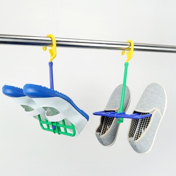 靴の乾きが早くなるシューズの水切り・乾燥がワンタッチで切替可能なハンガー竿からの脱落を防ぐストッパー付き回転式フックで干す方向を自由に変えられる汚れがちなスニーカーやお子様の上履き、雨の多い梅雨時期に!