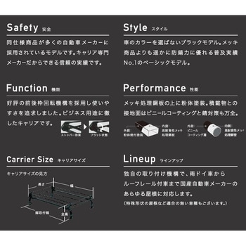 同仕様商品が多くの自動車メーカーに採用されているモデルです。キャリア専門メーカーだからできる信頼の実績です。