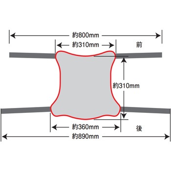 備考:取り付けベルトの長さ目安(片側):約25cm(前側:約24.5cm、後側:約26.5cm)、本体寸法を含む胴周り長さは、前側:約79cm、後側:約88cm