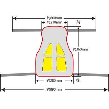 サイズ:約210(前幅)×約280(後幅)×約360mm(前後)、厚さ:14mm、ベルト部:長さ(片側)約25cm
