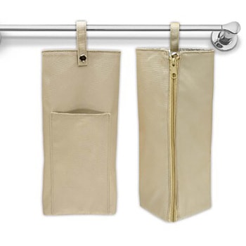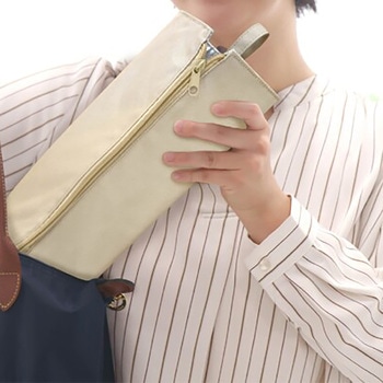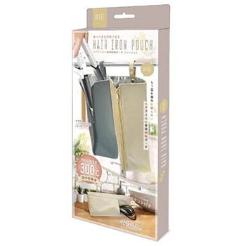 『ヘアアイロン専用耐熱ポーチ』は、大き目のヘアアイロンもスッポリ収納できる、「ヘアアイロン専用」の耐熱ポーチです。置き場所に困らないので、使い終わった後のヘアアイロンをテーブルの上に放置して出かけることも、もうありません。コードが収納できるポケット付きです。毎朝のメイクスペースへの設置や旅行の際にも便利なアイテムです。内部耐熱温度は約300度で、約幅10×奥行5×高さ30cm以内のヘアアイロンを収納できます。